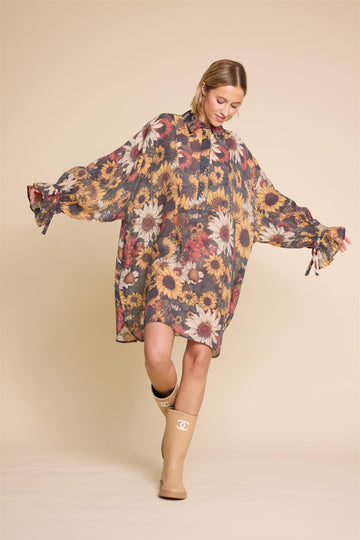 Vår populære Woodstock-kjole er tilbake – et drømmende tilskudd laget av en myk viskoseblanding. Den har knappelukking foran og delikate bånd ved mansjettene for et elegant preg. Med sin avslappede passform kan du bruke den som den er eller style den over favorittjeansen din for et lagdelt look.