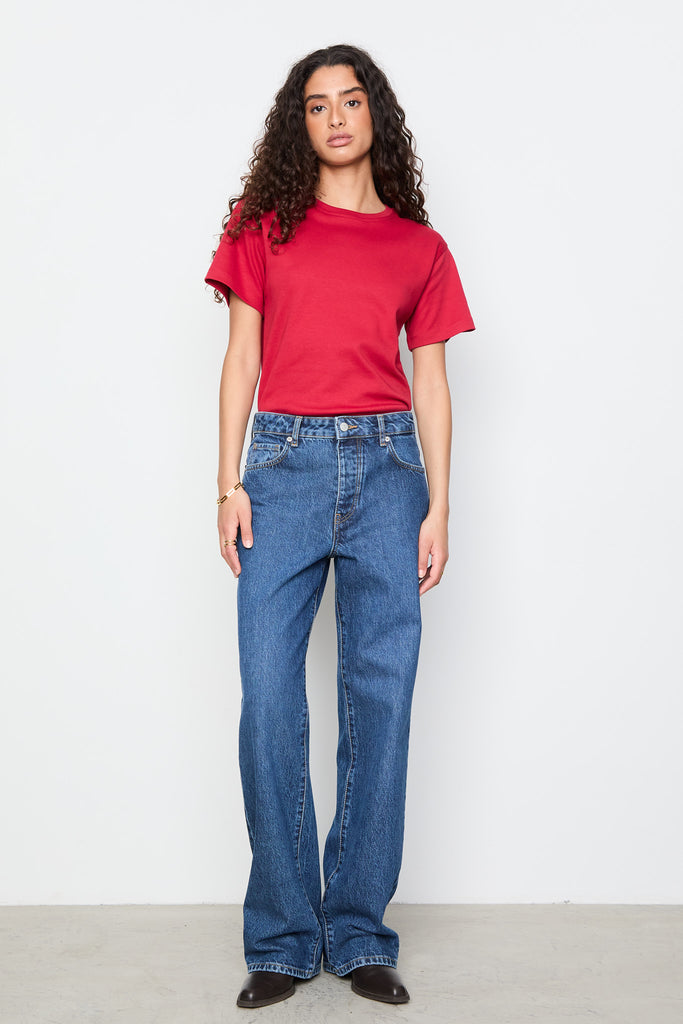 Billie er designet for å være behagelig og avslappet, med en løs passform over hofter og lår. De sitter perfekt på hoftene og har et rett, løst ben i full lengde. Nå i tommer.