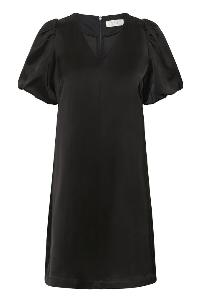 Modellen er 178 cm høy og har på seg størrelse 36. Denne korte kjolen i myk fløyel har en enkel A-form, korte puffede ermer og en feminin V-hals. Et elegant valg for både hverdag og festlige anledninger. Style den med strømpebukser og støvler for et klassisk uttrykk.
