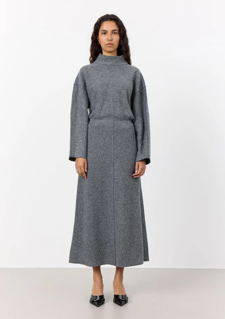 LR-ICON 1 er et langt skjørt laget av en blanding av ull og viskose. Skjørtet har en A-fasong og en glidelås som lukkes på den ene siden. Style den med en enkel bluse og et par stilige støvletter for å piffe opp antrekket.