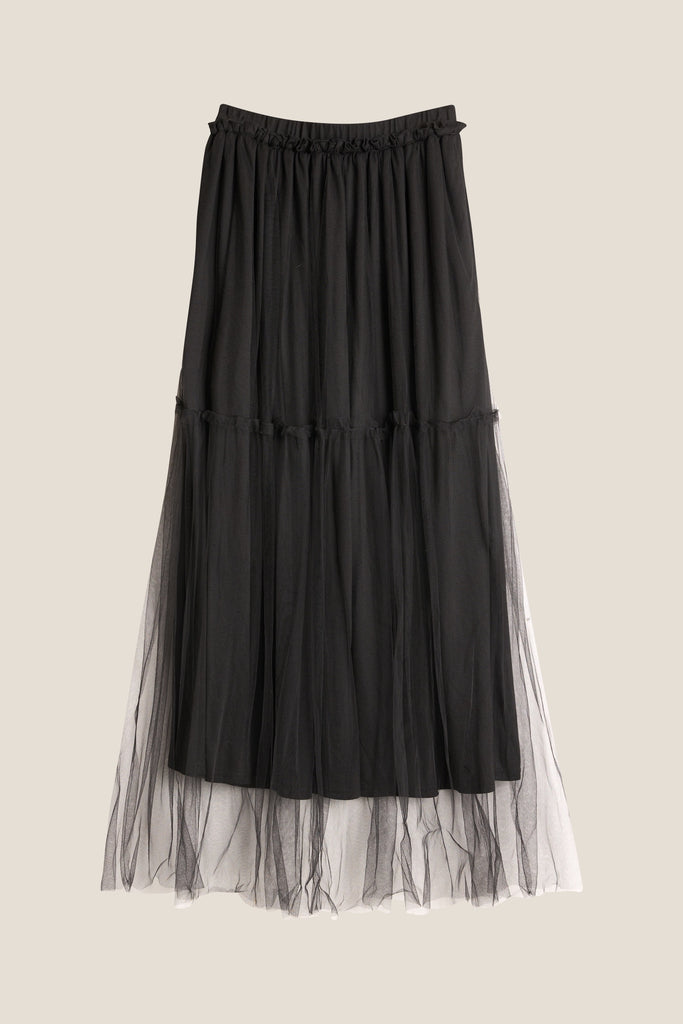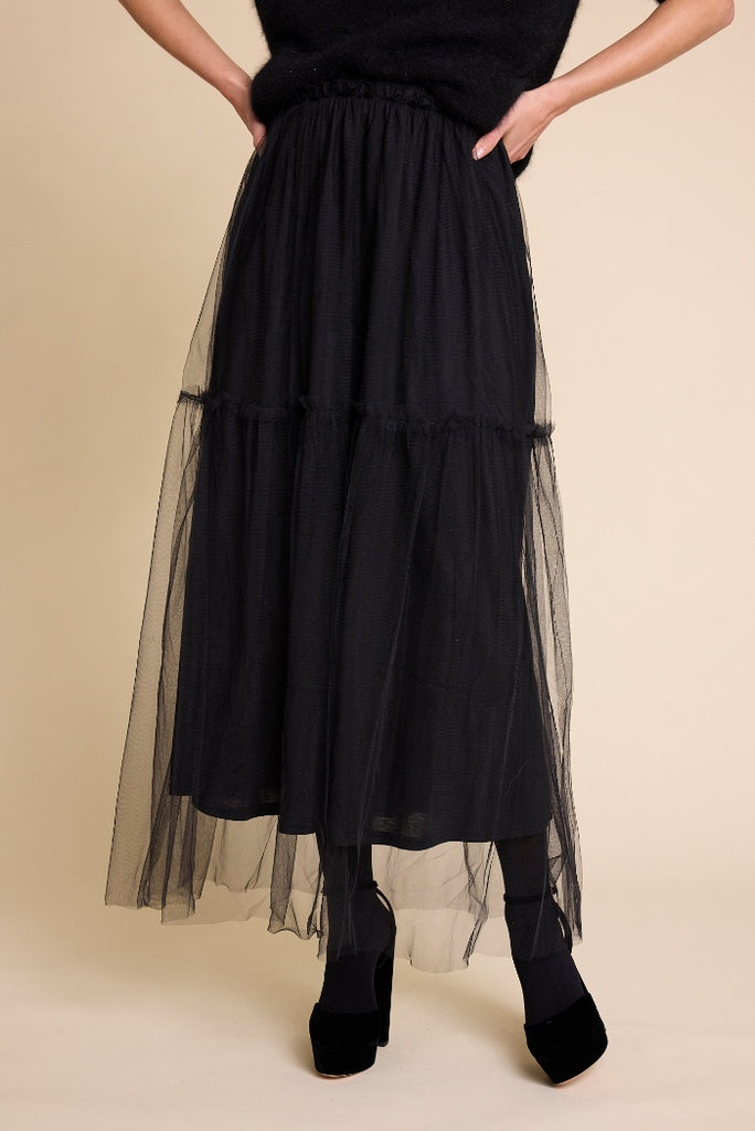 Hay Tulle er et vakkert skjørt designet med perfekt A-linjeform og elastisk linning for komfort hele dagen. Det har et delikat chiffonoverlegg som gir et elegant preg, sammen med en rynket kant og subtil rynket tekstur for uanstrengt sjarm. Kle det opp med en bluse og høye hæler, eller hold det uformelt med en koselig genser.