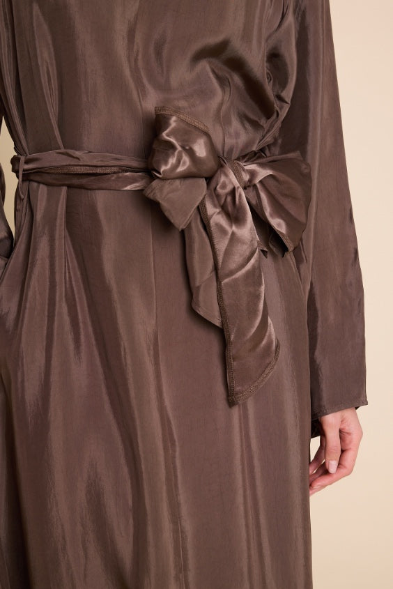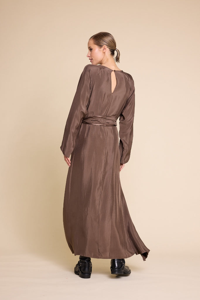 Bridget Long er en vakker maxi-kjole laget av førsteklasses viskose. Den har et elegant bånd i livet som gjør at du kan skape en mer feminin silhuett hvis du ønsker det. Med vide ermer, rund hals og knappelukking bak. Denne kjolen kombinerer eleganse og komfort på en uanstrengt måte.
