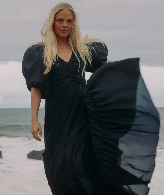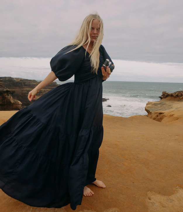 Den sofistikerte og sjelfulle Deep Ocean-kjolen er ren poesi i bevegelse.